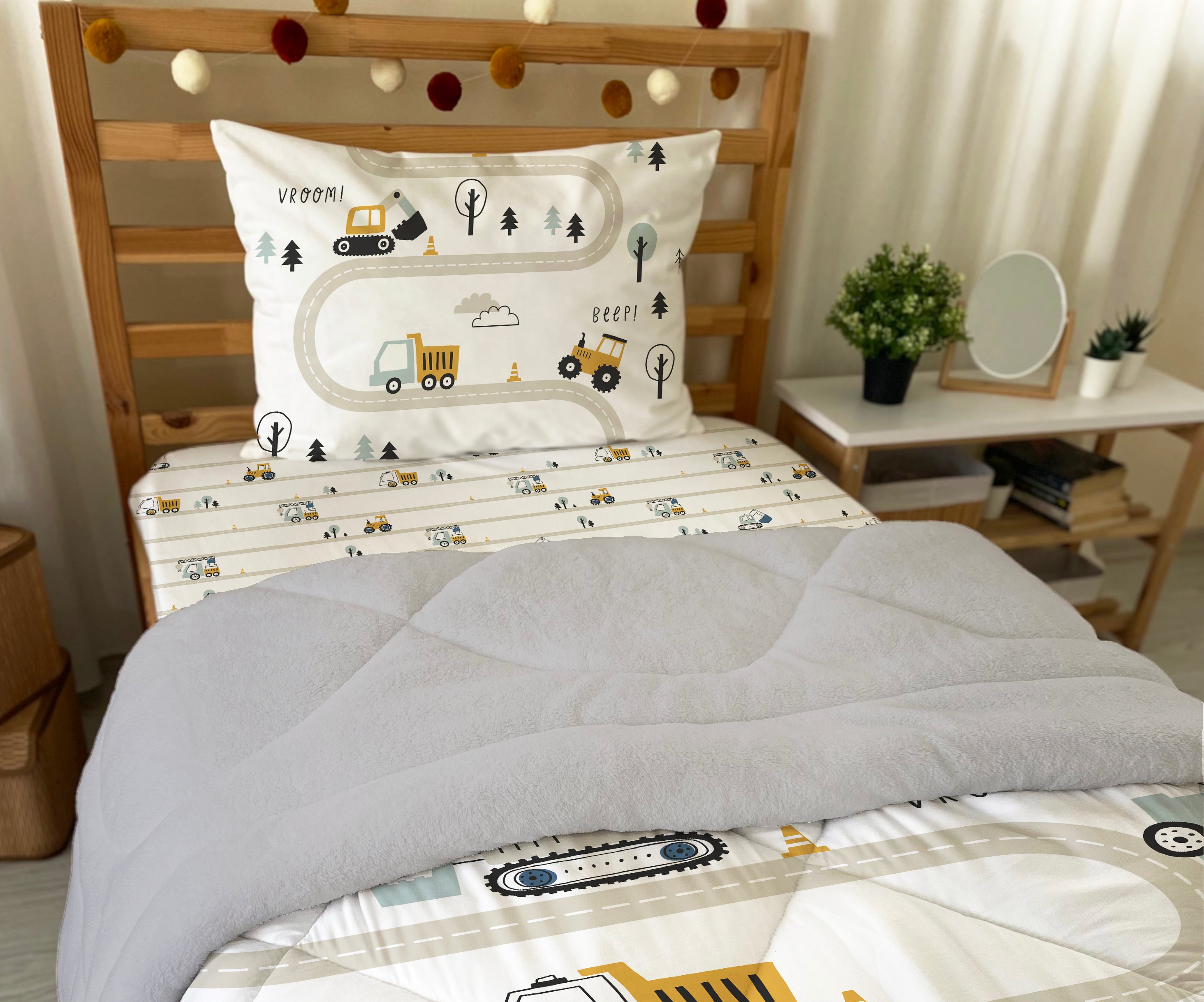 Evmila Cars and Road Patterned Plush Sleeping Set (Gray Plush)